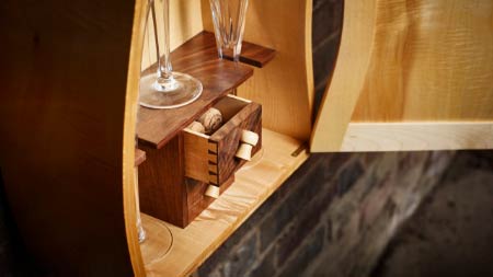 The combination between the light and dark materials gives a strong sense of stature, and balanced with the elegance of the laminated curves, creates a beautiful piece of contemporary craftsmanship while appreciating the traditional dovetailing methods and techniques.