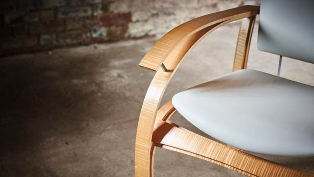 The chair brings together the aspects of its different materials: the rippled Sycamore resembles depth and character, while the stainless steel resembles direction and strong purpose.