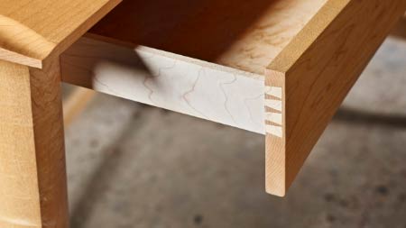 The discreet drawer is constructed in solid Maple with dovetail joints, with a Birds eye Maple base, while the chair seat is finished with a clean light cream leather for an elegant finish.