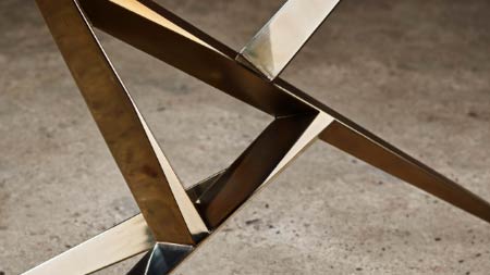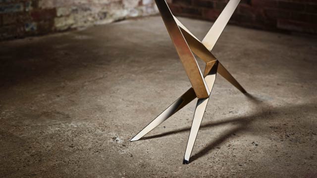 This dining table underframe was inspired by the contrasts of a city characterised by exciting and modernistic architecture situated next to historic landmarks.